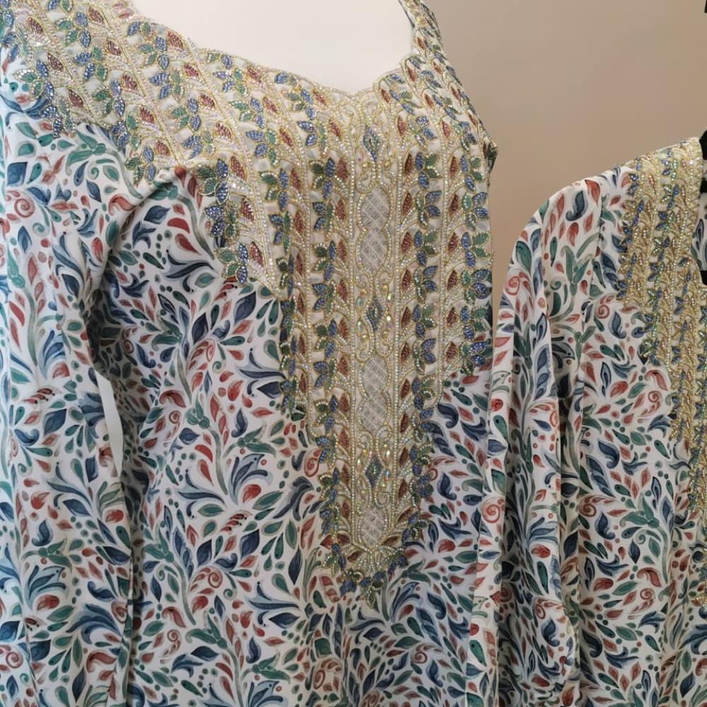 جلابيات خليجيه ناعمه طقم الام وبنتها ازرق