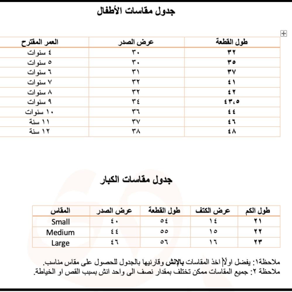 مقاس الام small (طول القطعة ٥٤ انش ومحيط الصدر ٤٠ انش)