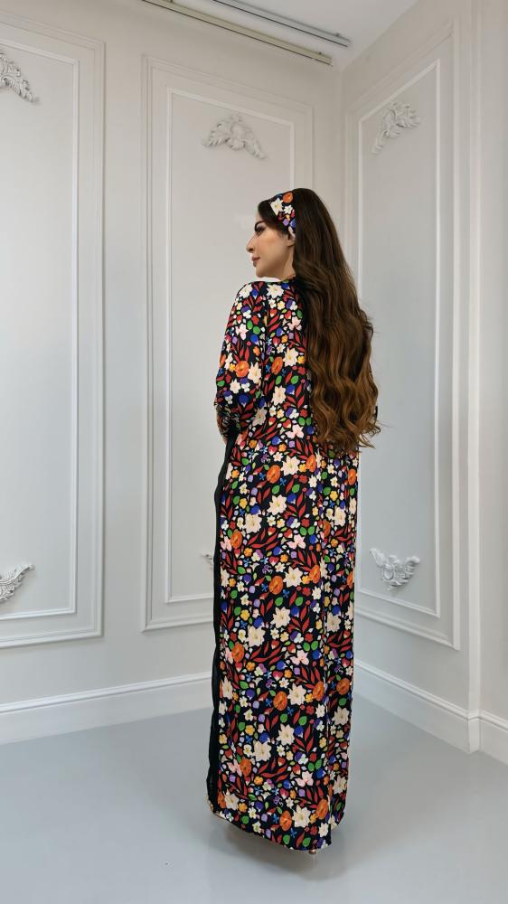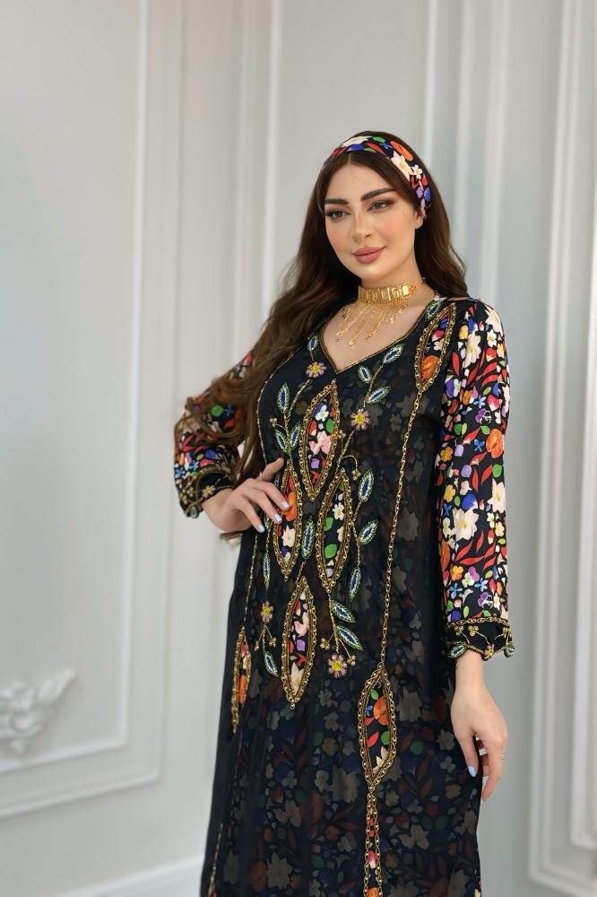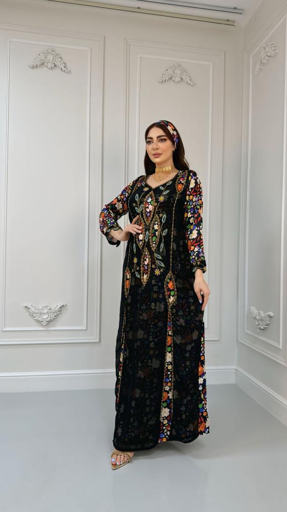 مخور قطعتين حرير ايطالي مع تور مطرز بالخرز.